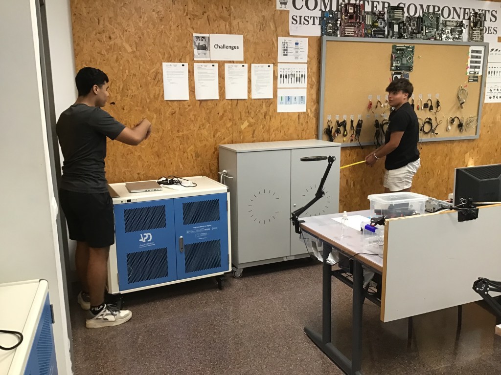 Alumnado de 1º del GM Sistemas Microinformáticos y Redes comprobando las condiciones de seguridad y salud del IES Remedios Muñoz (Los Montesinos).