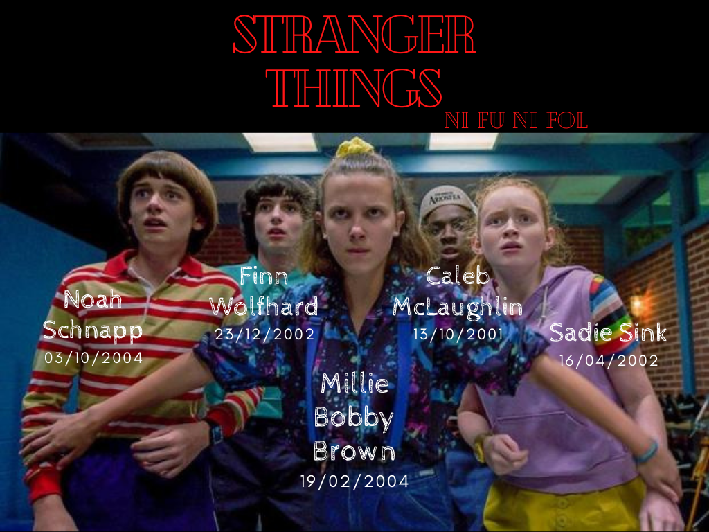 1. La primera temporada de la serie Stranger Things se emitió por primera vez en julio de 2016. ¿Qué edad tenían entonces sus famosos protagonistas? Señala qué requisitos deberían haber reunido para poder rodar en España.