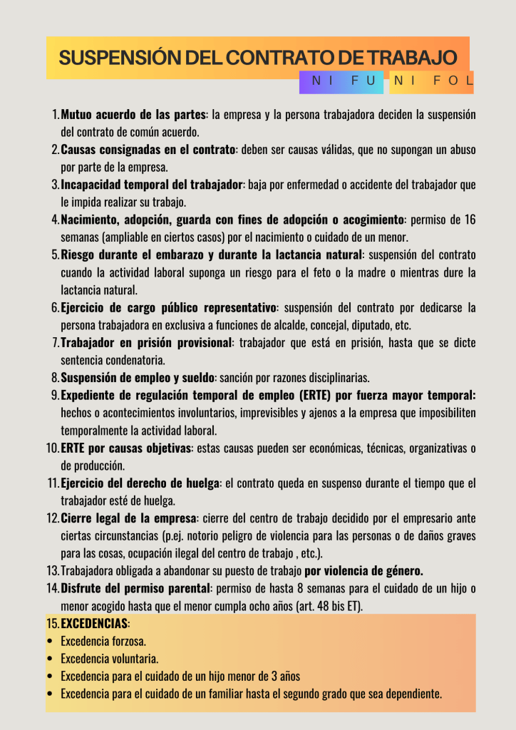 CAUSAS DE SUSPENSIÓN DEL CONTRATO DE TRABAJO