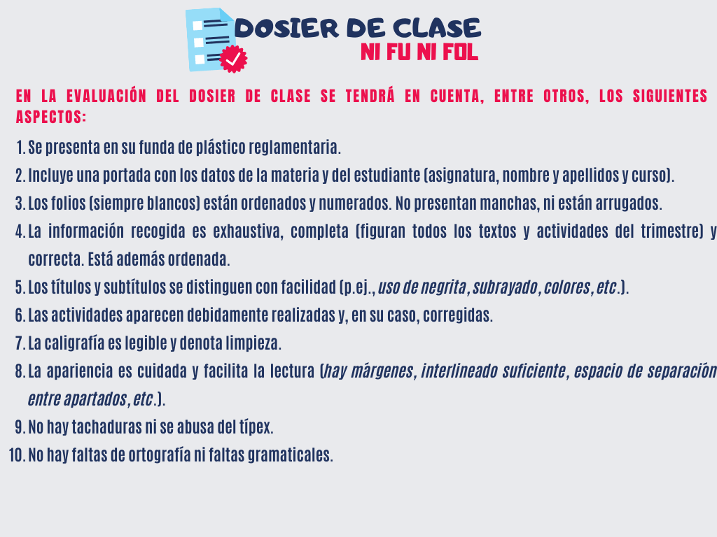 Si estudias Secundaria o FPB y tienes presentar tu dosier de clase al final del trimestre, recuerda lo siguiente:
