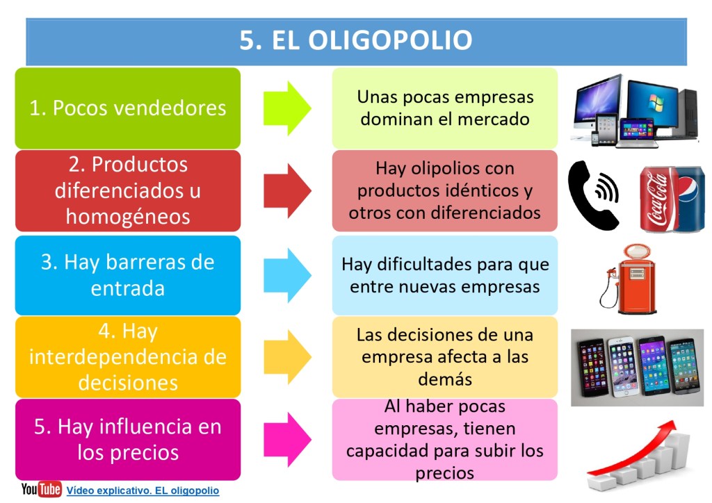 Para conocer más sobre estas estructuras de mercado, puedes visitar la web ECONOSUBLIME, de Javier Martínez Argudo, de la que se han extraído las anteriores infografías.