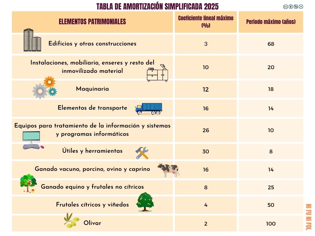 El Ministerio de Hacienda aprueba y publica las tablas de amortización de los bienes y activos de las empresas; estas tablas varían según el régimen tributario correspondiente a cada empresa. A modo de ejemplo, se acompaña la tabla de amortización simplificada, que aplican los autónomos que tributan en estimación directa simplificada.