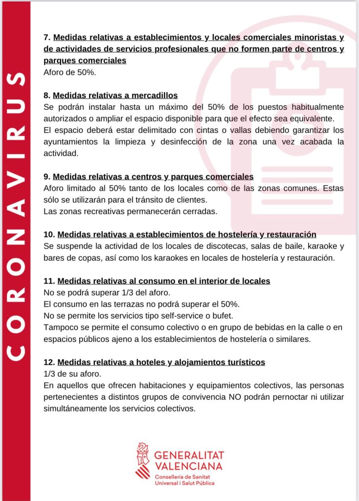En la Comunitat Valenciana, el Consell anunció ayer nuevas medidas restrictivas, con una vigencia prevista entre el 21 de diciembre y el 15 de enero: