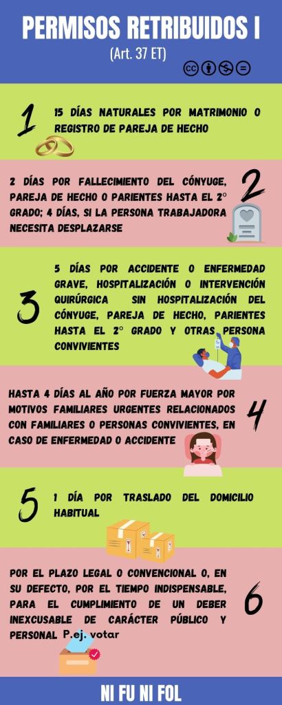 Los trabajadores, previo aviso y justificación, podrán ausentarse del trabajo, con derecho a remuneración, por determinados motivos. Estos permisos retribuidos se regulan en el artículo 37 ET (ver AQUÍ):